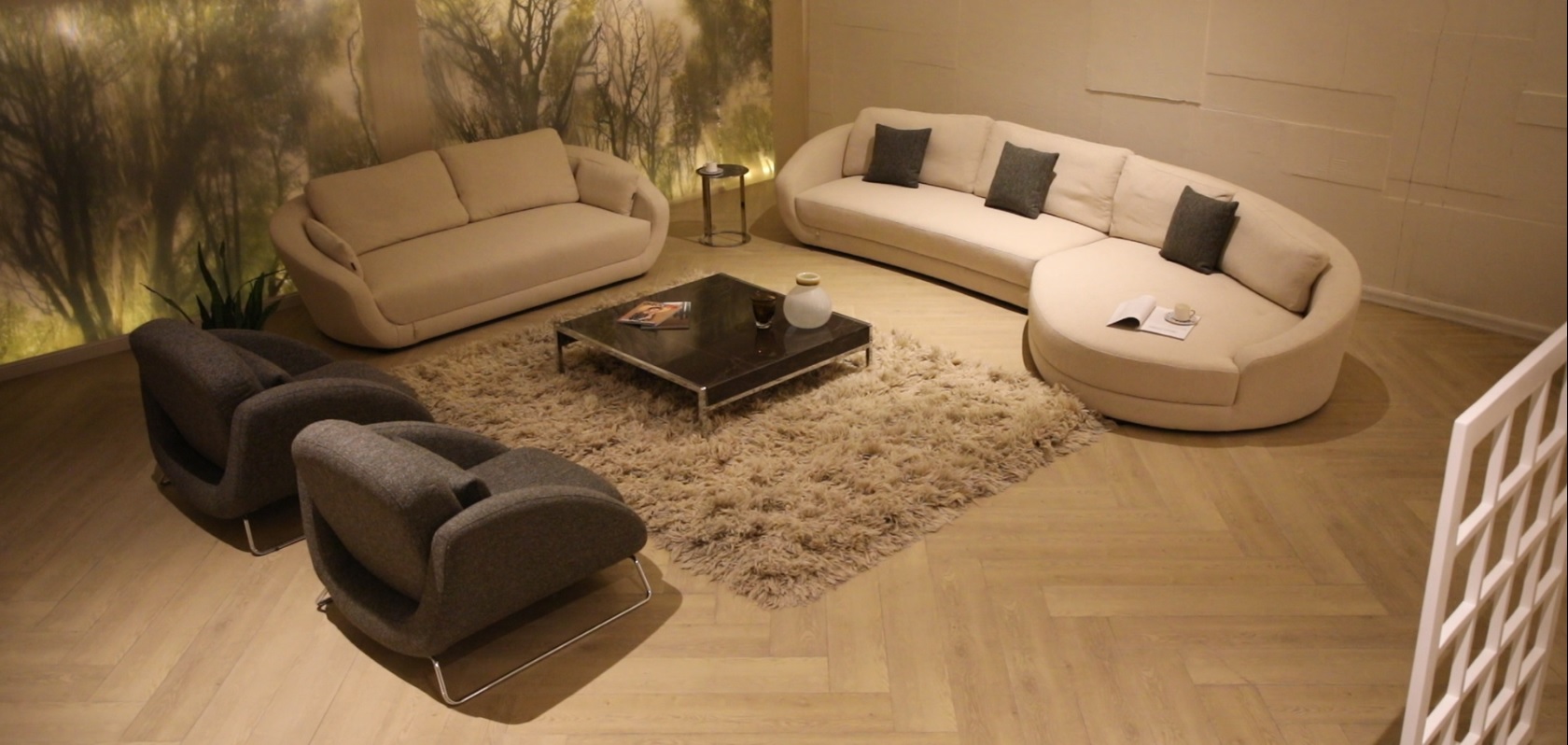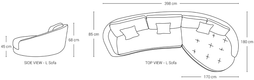 The various modular elements allow for a wide range of arrangements, from L-shaped configurations characterised by the perfect geometry to linear interpretations that can evolve into sinuous profiles thanks to the original Banoo “Drop” curved elements.
