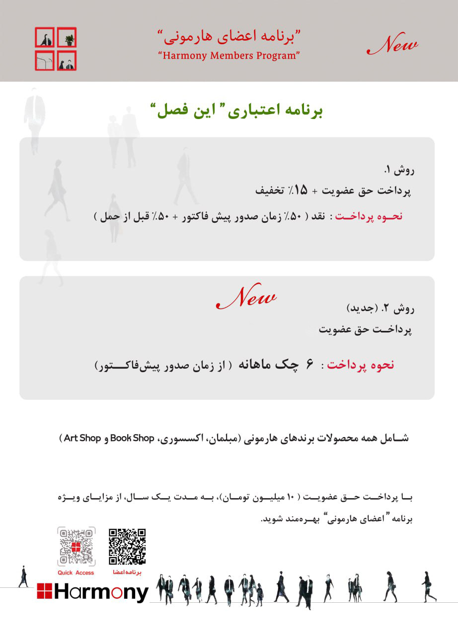 هزینه عضویت در “برنامه اعضای هارمونی” 10 میلیون تومان برای یک سال میباشد.