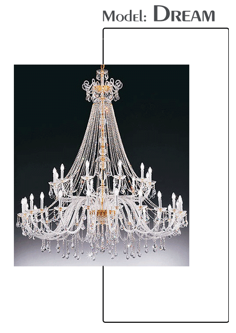 Lighting collection with hand-made blown lead crystal 24% PbO, available with 24 KT gold or nickel frame.