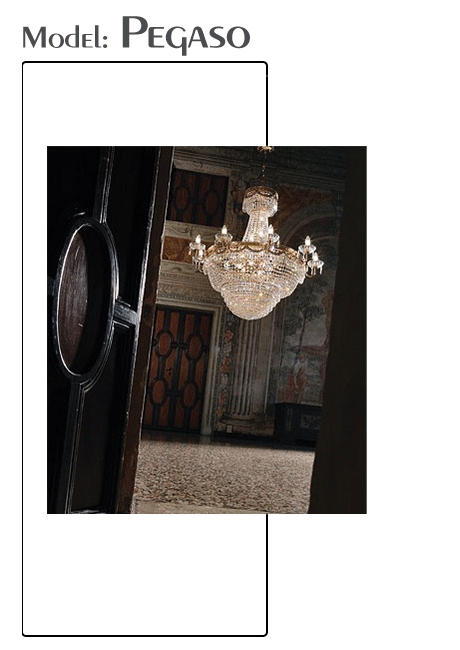 Lighting collection with lead crystal 24% PbO pendants, available with 24 KT gold or nickel frame.