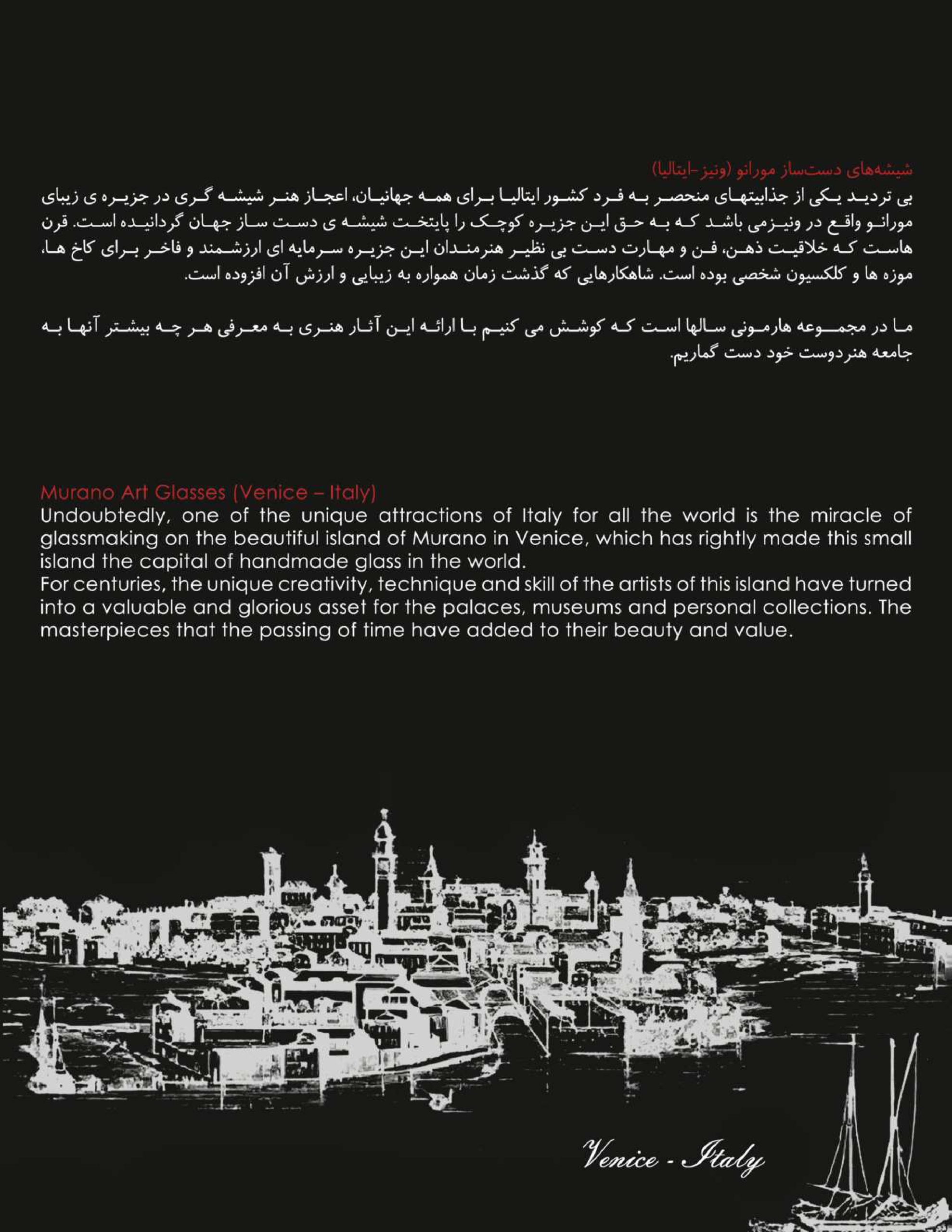 ارائهی سازههای شیشهای خاص و یونیک با طراحی تیم هارمونی که در جزیرهی مورانوی ایتالیا ساخته شده است.