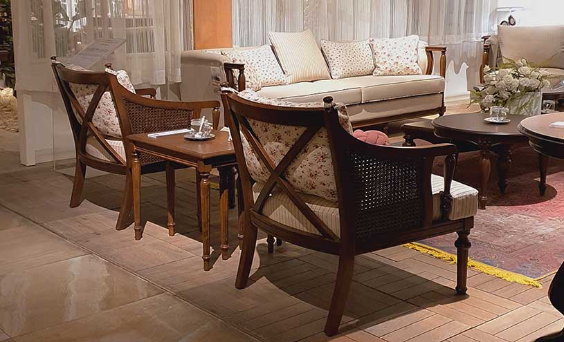 در فریم اصلی این مبل از چوب‌های راش گرجستانی و چوب کاج استفاده شده است که بخش‌هایی از آن  به وسیله دستگاه‌های CNC فرم گرفته، سپس ظریف‌کاری نهایی بوسیله دست استادکاران ماهر شکل نهایی را به خود می‌گیرد.